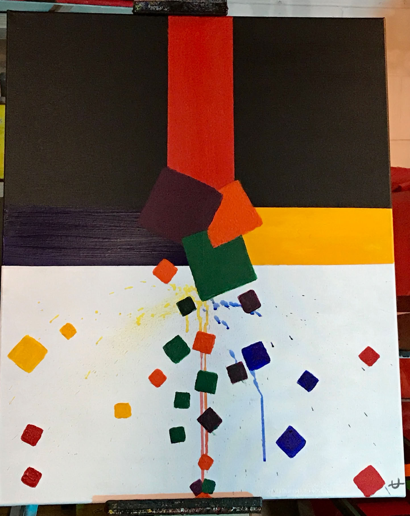 Mixed Media: Oil, acrylic and watercolor on canvas.