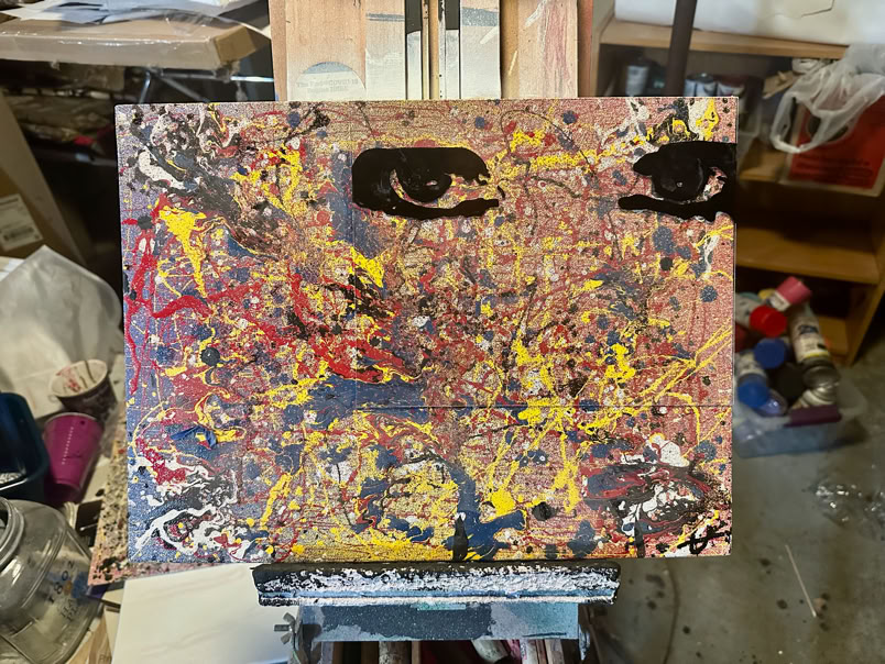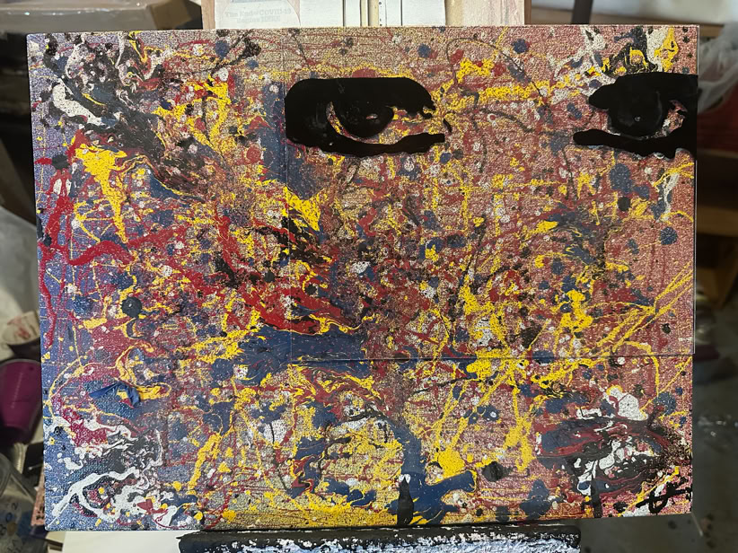 Gloss enamel and ink on acrylic and canvas board.